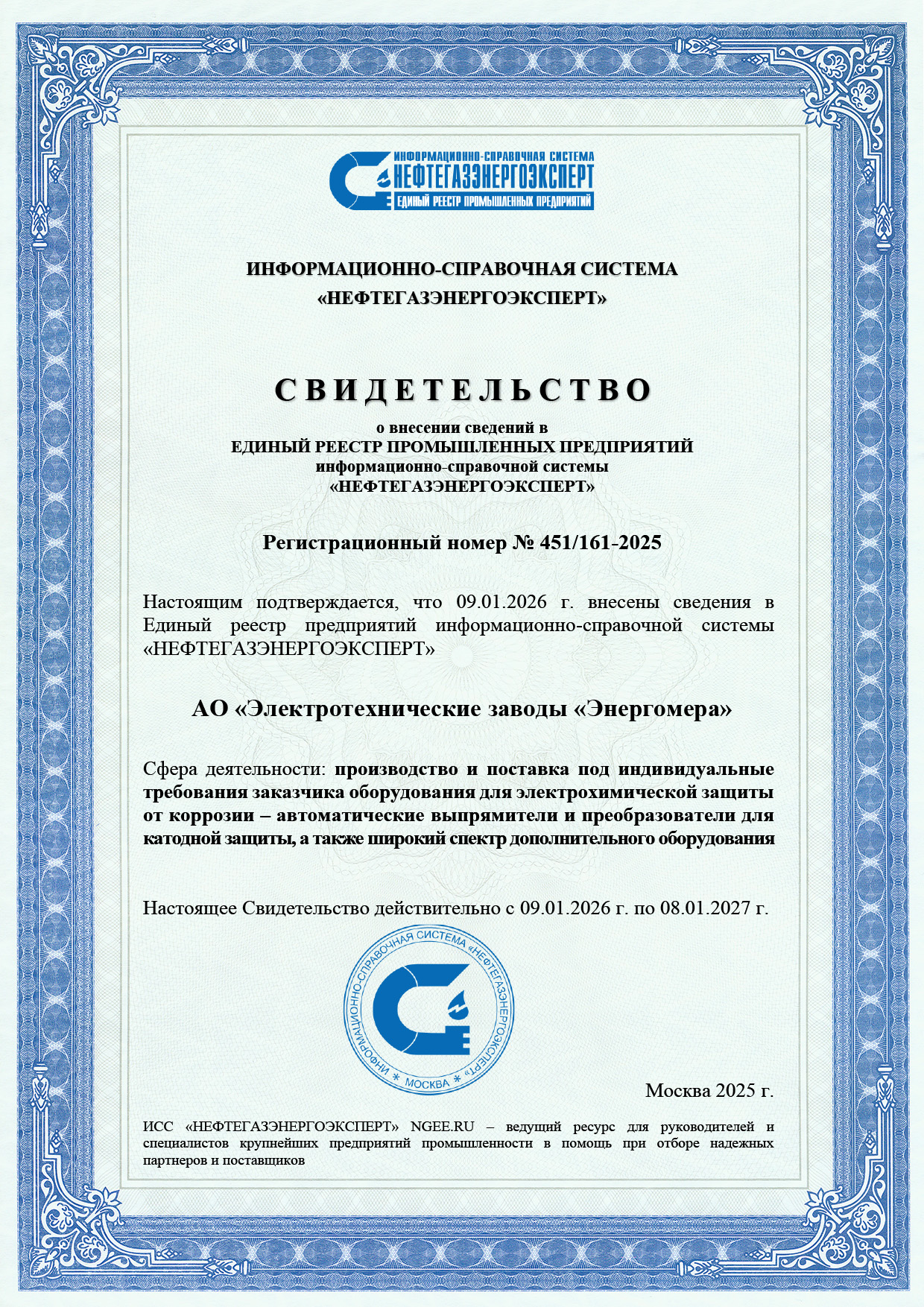Документы компании АО "ЭНЕРГОМЕРА" ИНН 2635133470