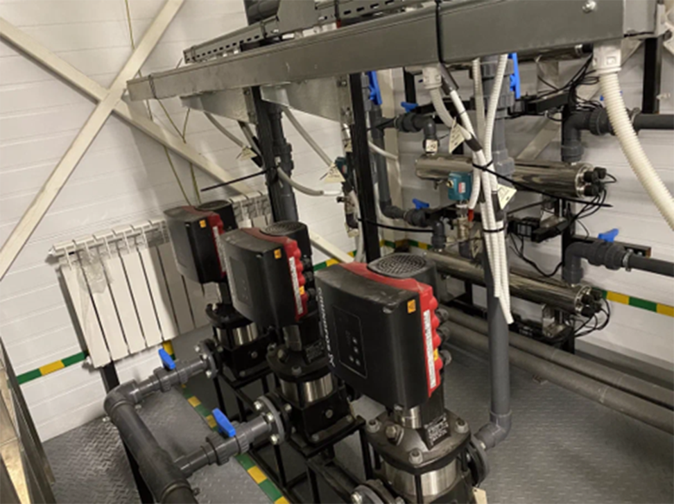 После прохождения через фильтры воды поступает в резервуар чистой воды. В резервуаре чистой воды предусмотрена непрерывная циркуляция воды через систему ультрафиолетового обеззараживания.