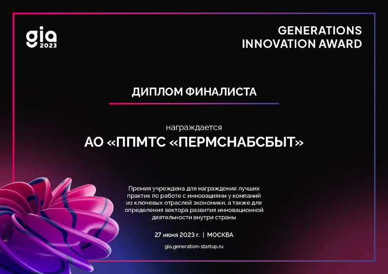 В начале июля Корпорация ПСС получила диплом финалиста первой федеральной Премии в области корпоративных инноваций GenerationS Innovation Award 2023 (GIA 2023), учреждённой под патронатом Минпромторга и Минэкономразвития РФ.
