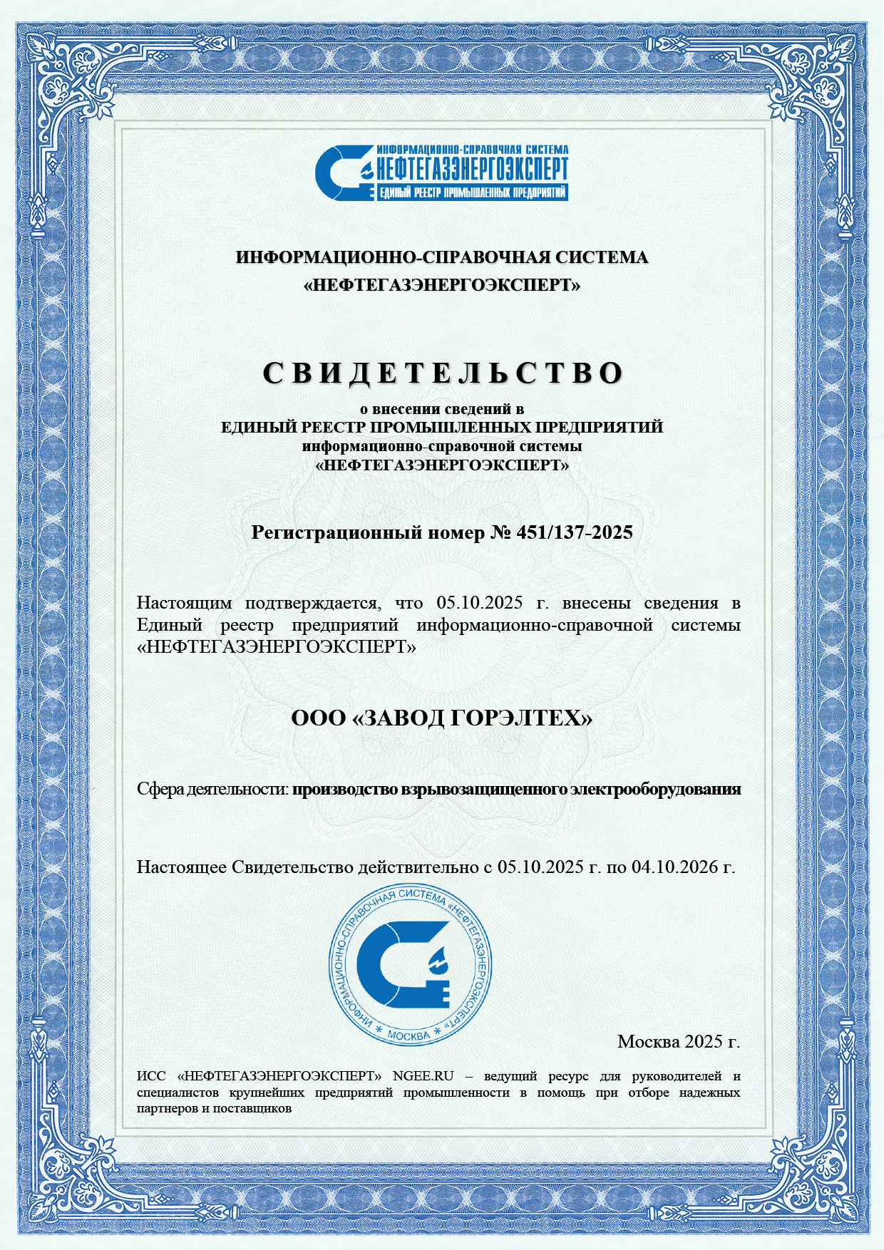 Документы компании ООО "ЗАВОД ГОРЭЛТЕХ" ИНН 7806155468