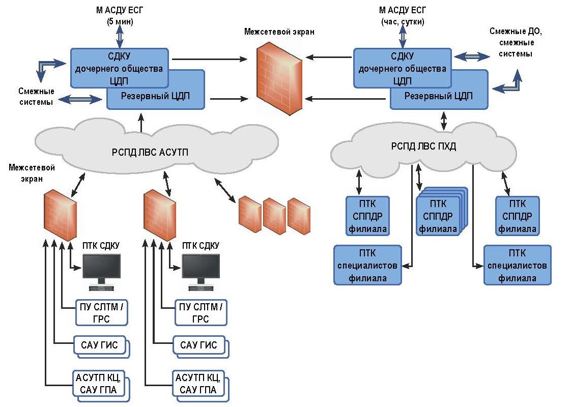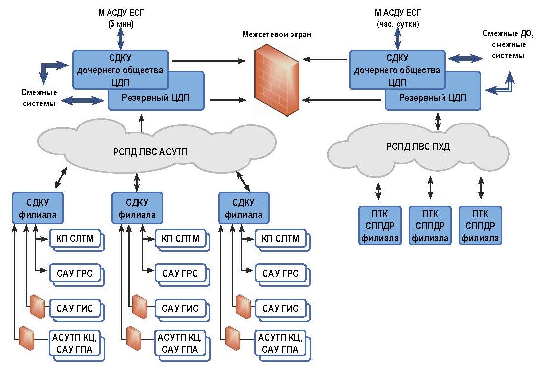 На рисунке ниже изображена многоуровневая система классической архитектуры, где сервера реального времени располагаются на всех уровнях диспетчерского управления. СПУРТ-Р эффективно поддерживает межуровневый обмен данными. Сервера СППДР централизованно располагаются на «верхнем уровне».