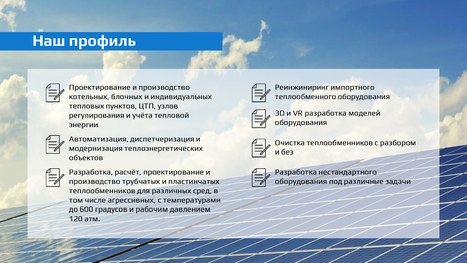- Автоматизация, диспетчеризацию и модернизацию теплоэнергетических объектов.